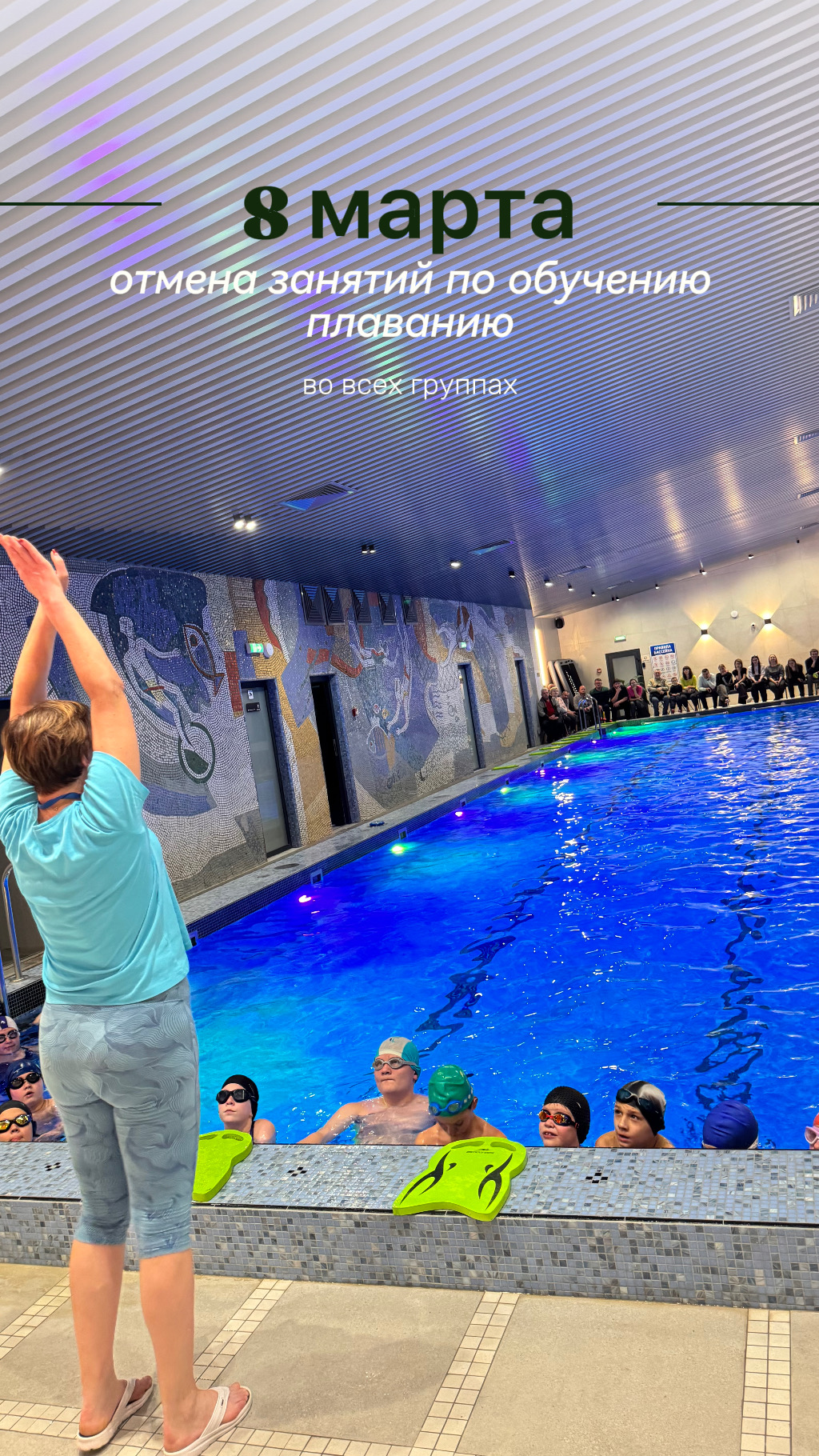 Информируем вас о том, что 08.03.2026 г.(воскресенье) занятий по обучению детскому и взрослому плаванию НЕ БУДЕТ!