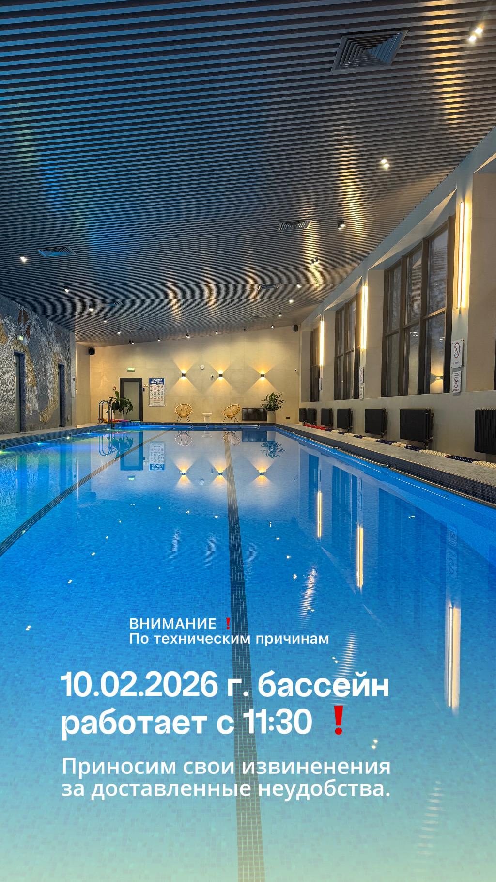 Информируем вас о том, что 10.02.2026 г.(вторник) по техническим причинам бассейн работает с 11:30 !
